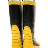 Enhance your firefighting gear with our tough yellow and black rubber safety boots. These boots are built to handle the tough job of firefighting. They resist heat and flames while also being stylish. They come with features like anti-skid, shock-proof, puncture resistance, and protection from fire, along with insulation and anti-radiation properties. These boots are the best pick for firefighters.