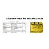 Galsorb spill kit – your go-to solution for spills. Packed with necessary items like absorbent pads, mini boom, pillow, garbage bag, disposal box, nitrile gloves, chemical mask, and dust goggles. Check the chart for details on what’s inside.